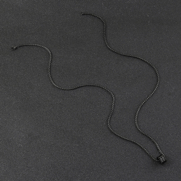 Black Silver Plated Stainless Steel Anti Tarnish Triple Linked Rings Black Circular Pendant