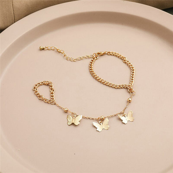 Gold Plated Butterfly inspired Contemporary Bracelet With Ring