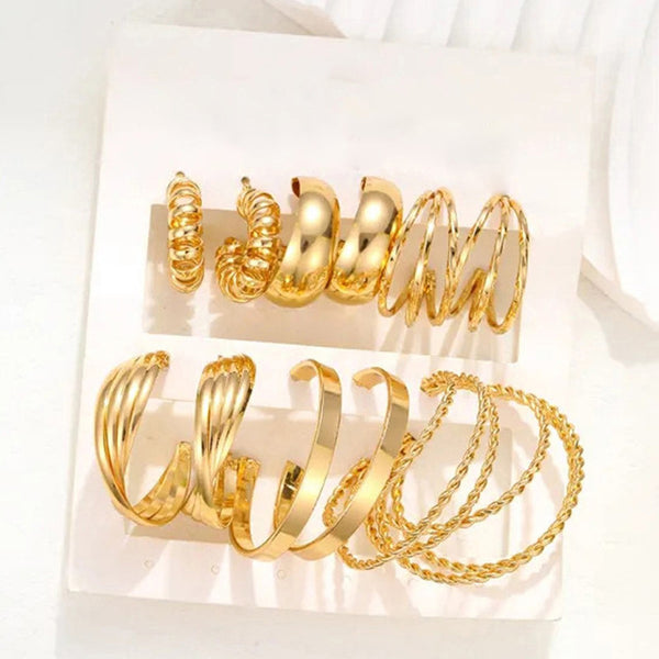 Gold Plated Contemporary Pack of 6 Hoop Earrings Combo For Women