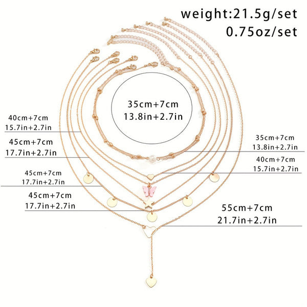 Gold-Plated Gold-Toned Pack of 7 Butterfly Layered Necklace